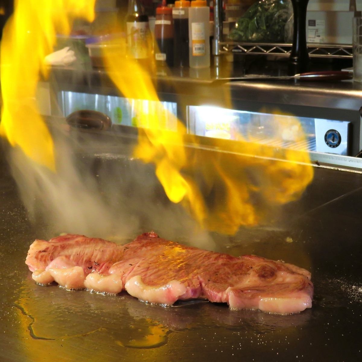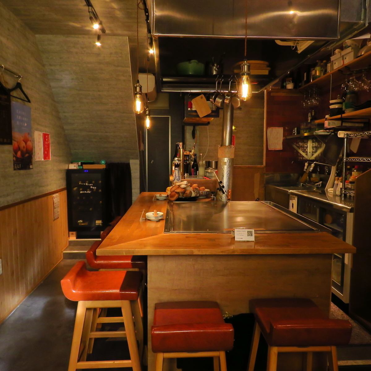 特別な夜を演出するモダンな店内◎カウンター席では、目の前でシェフが繰り出す華麗な鉄板焼きの調理風景をお楽しみいただけます。熱々の料理を堪能できるライブ感溢れる空間は、デートや記念日にもぴったりです。お一人様でも気軽に立ち寄って、和牛ステーキや帆立バターなどの鉄板料理と冷たいお酒をご堪能ください。
